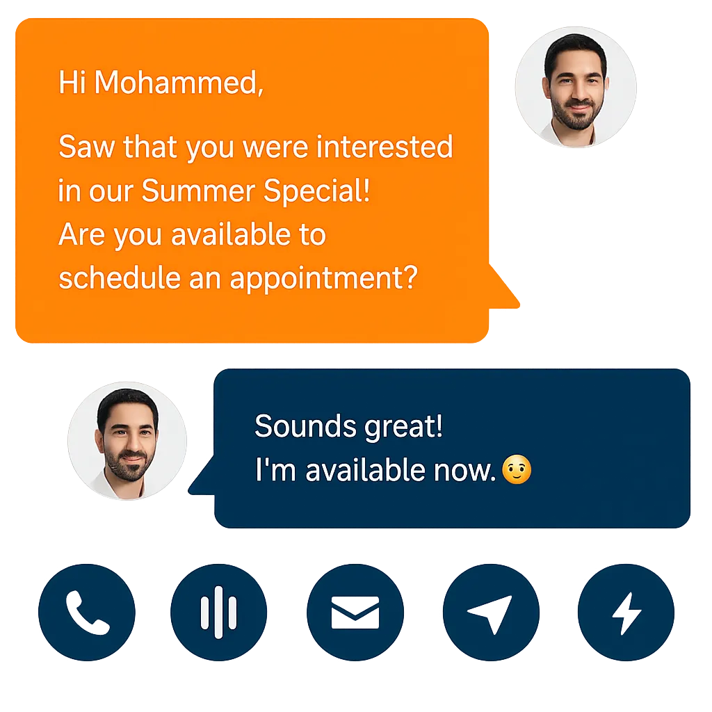 أنشئ مسارات نصية تقود العملاء المحتملين لحجز الموعد مباشرة — دون تدخل بشري.